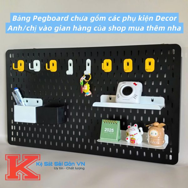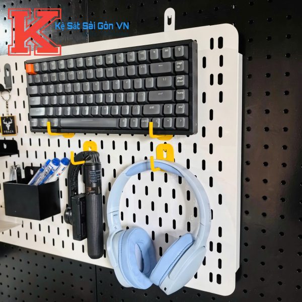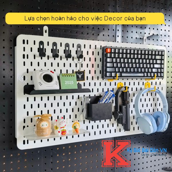 – Bảng lỗ được gắn tường treo phụ kiện, decor phòng và cửa hàng.