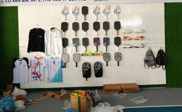 Bảng lỗ Pegboard treo vợt Pickleball trưng bày
